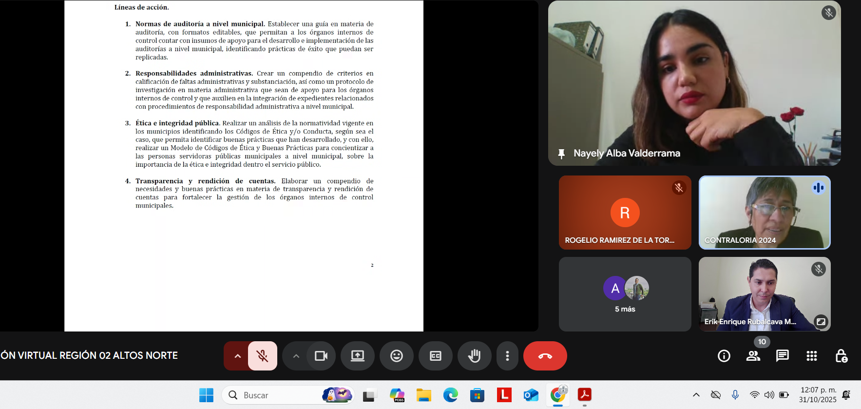 | 02 | En sesión celebrada el día 22 de octubre de 2025, se desarrollaron los trabajos por los Titulares de los Órganos Internos de Control de los Municipios que conforman la Región 07 Sierra de Amula, relacionados con la línea de acción Ética e Integridad Pública